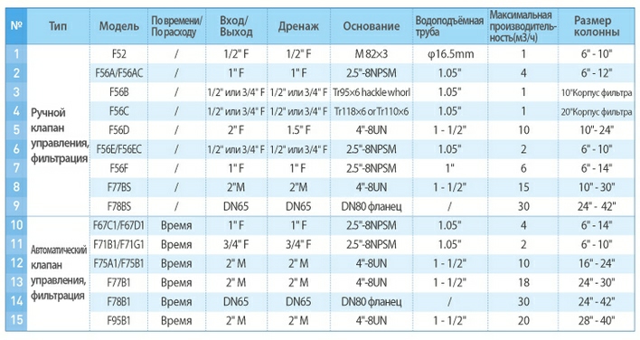 - по таймеру или по объему, для фильтрации или для умягчения, модели различной производительности